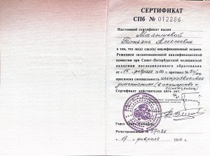 С 2000 года я самостоятельно начала изучать перинатальную психологию, т.к. в ХХ веке было запрещено изучать психологию врачам-студентам в медвузах. Полученные знания позволяют мне успешно помогать семьям в решении вопросов репродуктивного здоровья.