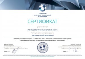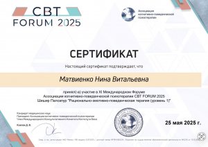 Здравствуйте, меня зовут Нина Матвиенко, я системный семейный психолог, КПТ-терапевт. Член Ассоциации когнитивно-поведенческой психотерапии, перинатальный психолог, специалист по семейному устройству и помощи принимающим семьям. За моими плечами не только университетские программы и научные конференции, но и 20 лет личного опыта в браке, а также трое детей.
